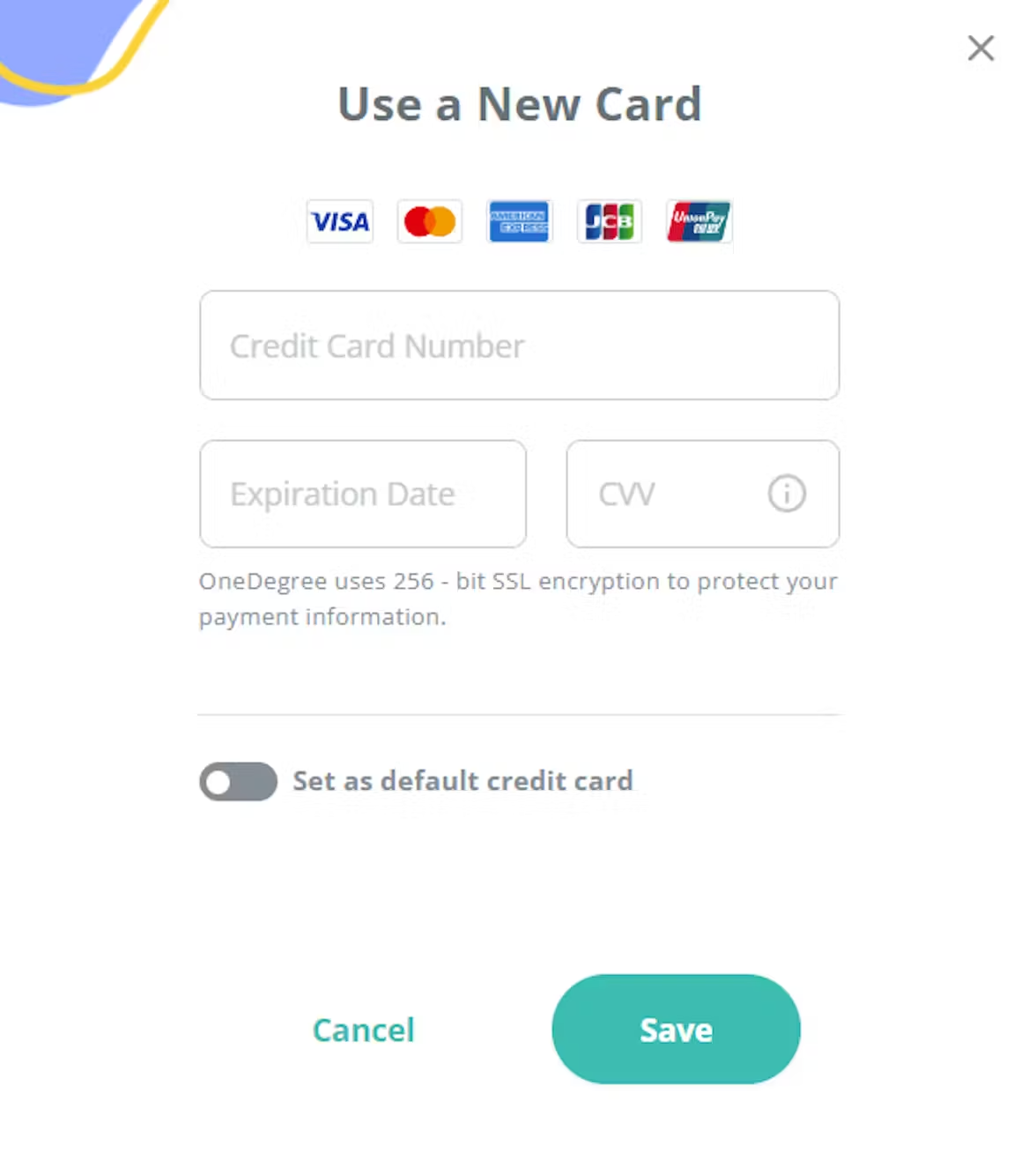 4. Enter your credit card number, expiration date, and CVV, then click "Save".